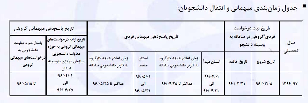 تقویم اجرایی میهمانی و انتقال دانشجویان