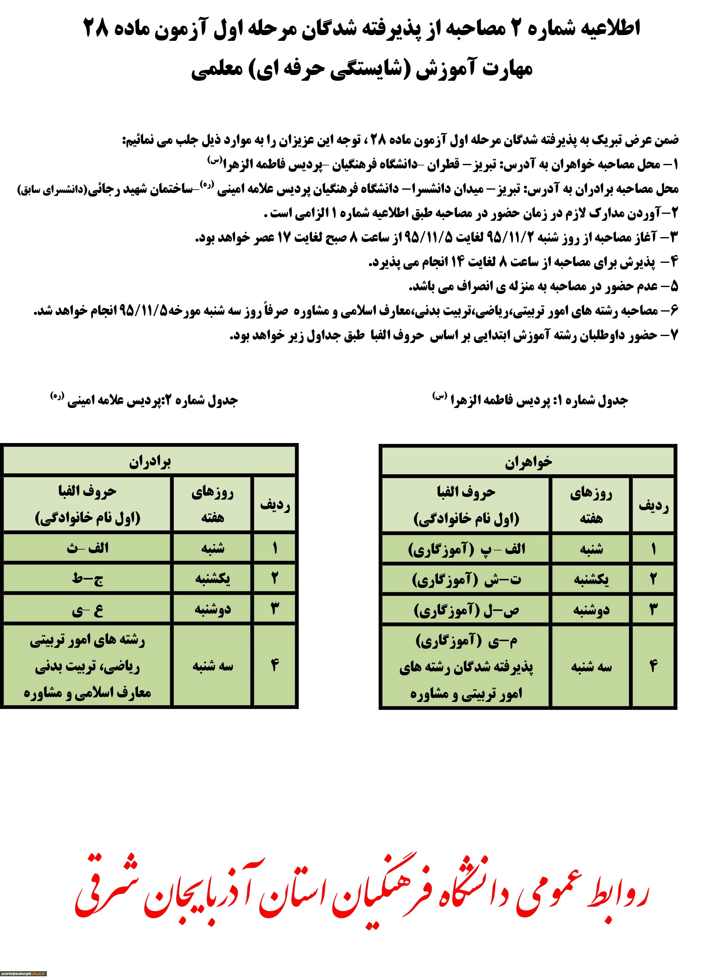 امتیاز دهید : اطلاعیه شماره 2 مصاحبه از پذیرفته شدگان مرحله اول آزمون ماده 28 سهشنبه 28 دی 1395 ساعت 17:41