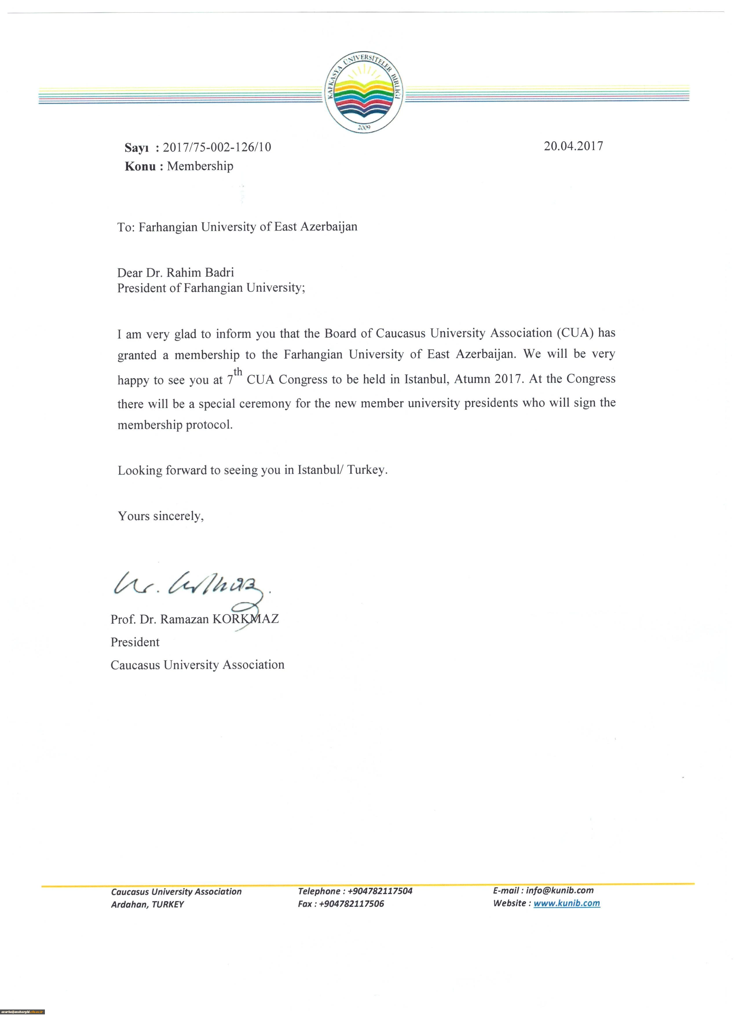 امتیاز دهید : عضویت دانشگاه فرهنگیان آذربایجان شرقی در اتحادیه دانشگاههای منطقه قفقاز(CUA) جمعه 26 خرداد 1396 ساعت 13:26