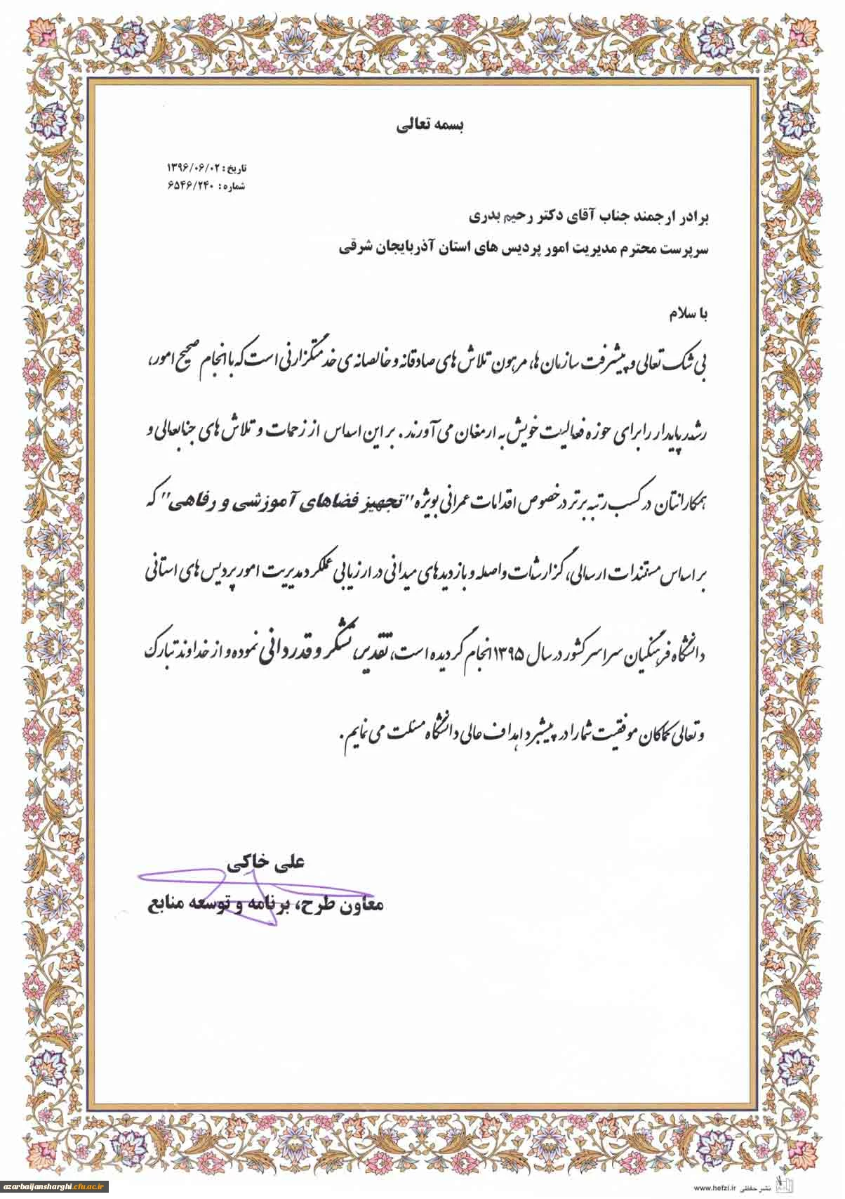 کسب رتبه برتر اقدامات عمرانی بویژه " تجهیز فضاهای آموزشی و رفاهی"