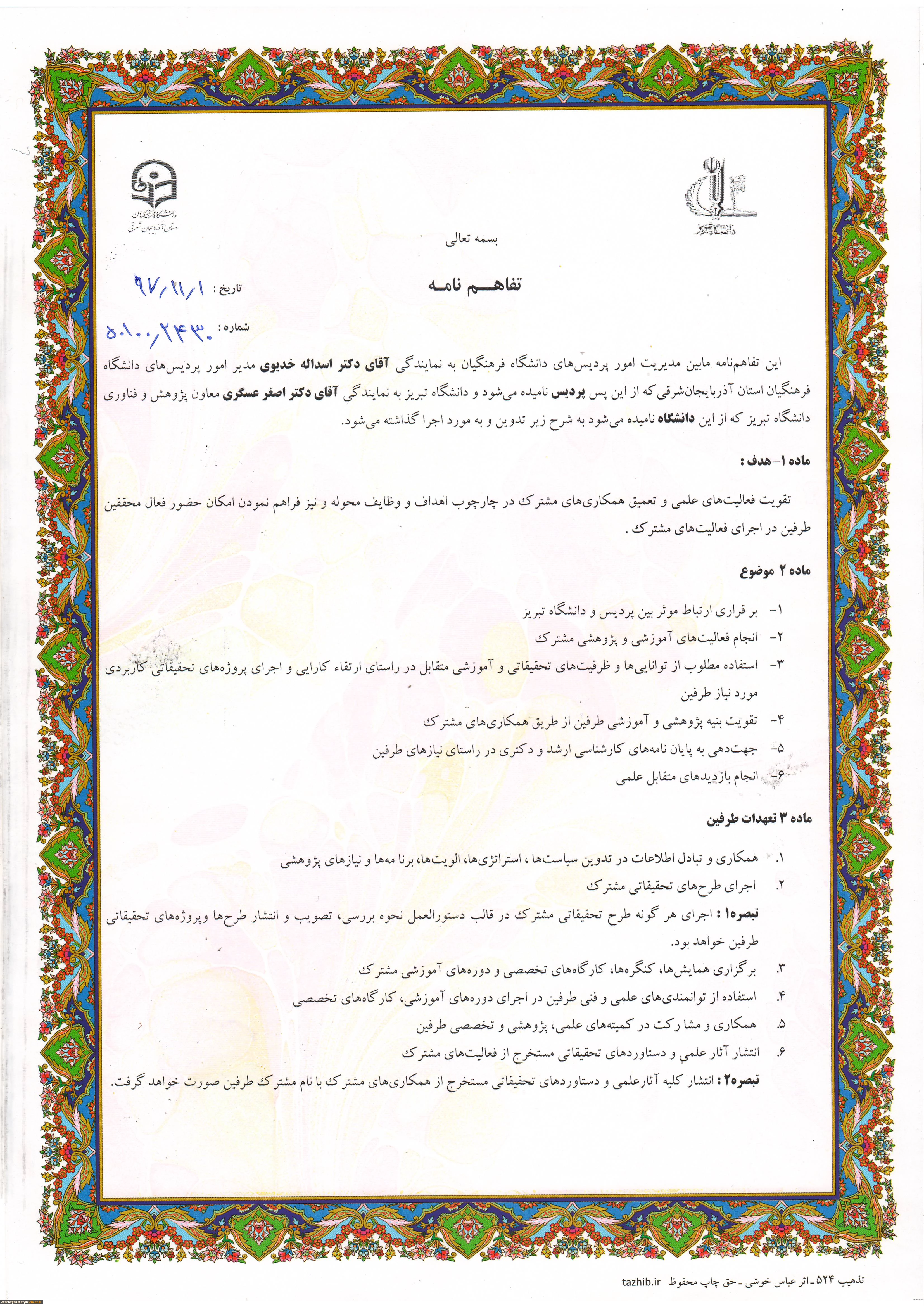 تفاهم نامه همکاری بین دانشگاه تبریز و دانشگاه فرهنگیان آذربایجان شرقی