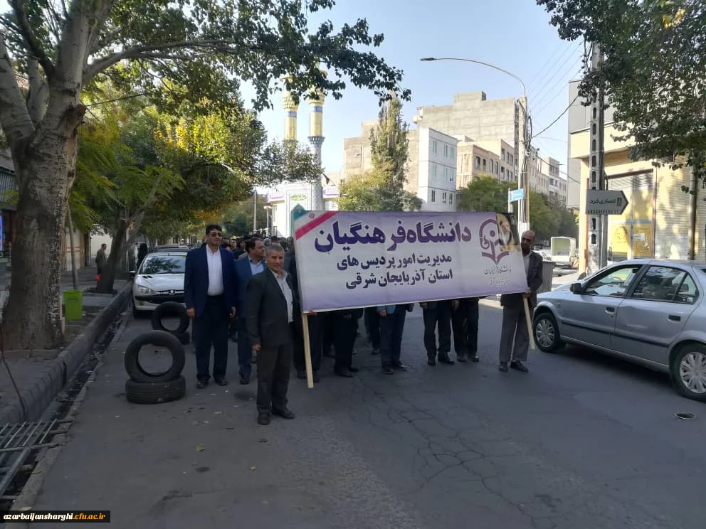 حضور پرشور مسئولین مدیریت امور پردیس های استان و روئسا ، اساتید، کارکنان و دانشجومعلمان پردیس های علامه امینی و فاطمه الزهرا(س) تبریز در راهپیمایی ۱۳ آبان 2