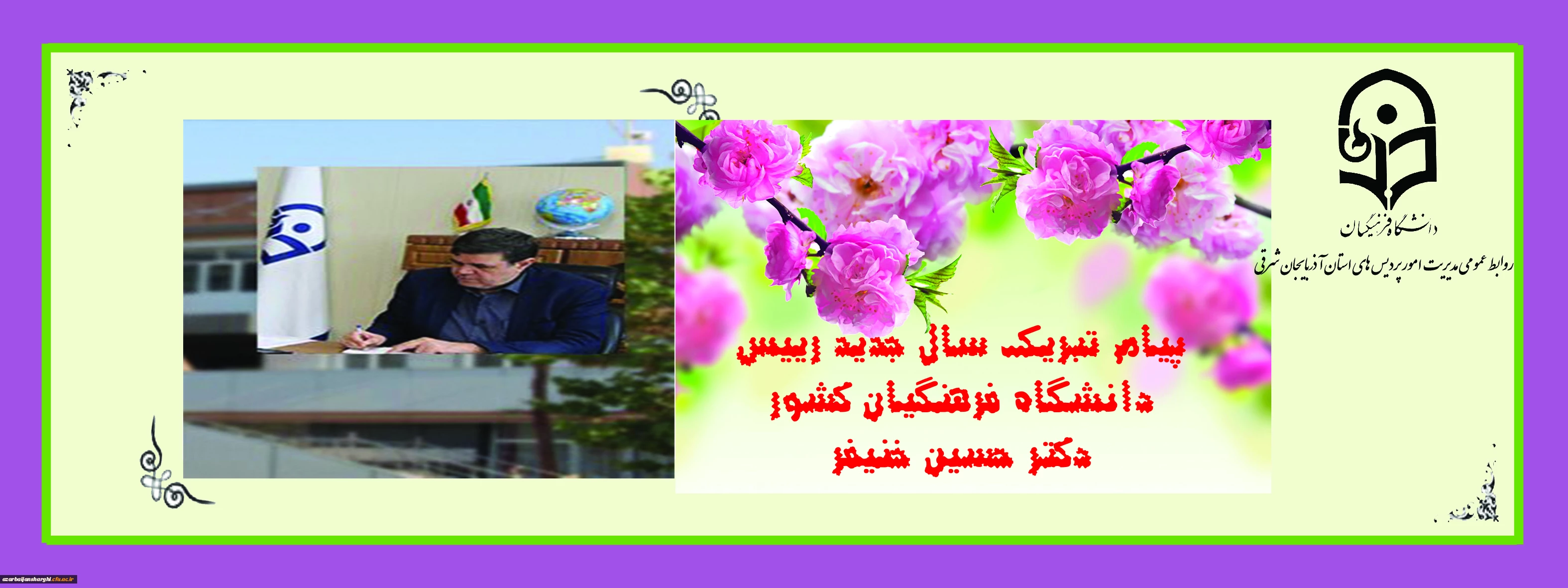 امتیاز دهید : پیام تبریک سال جدید رییس دانشگاه فرهنگیان کشور دکتر حسین خنیفر 3 سهشنبه 27 اسفند 1398 ساعت 13:18