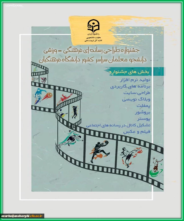 امتیاز دهید : چهارمین جشنواره طراحی رسانه های فرهنگی- ورزشی سراسر کشور دانشگاه فرهنگیان 2 شنبه 30 فروردین 1399 ساعت 14:49