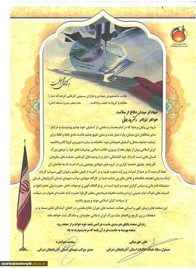 تقدیر از همکاران پردیس فاطمه الزهرا(س) به عنوان جهادگران میدان دفاع از سلامت 2