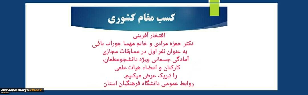 امتیاز دهید : کسب رتبه برتر کشوری توسط دکتر مرادی و خانم جوراب بافی 2 پنجشنبه 5 فروردین 1400 ساعت 0:42