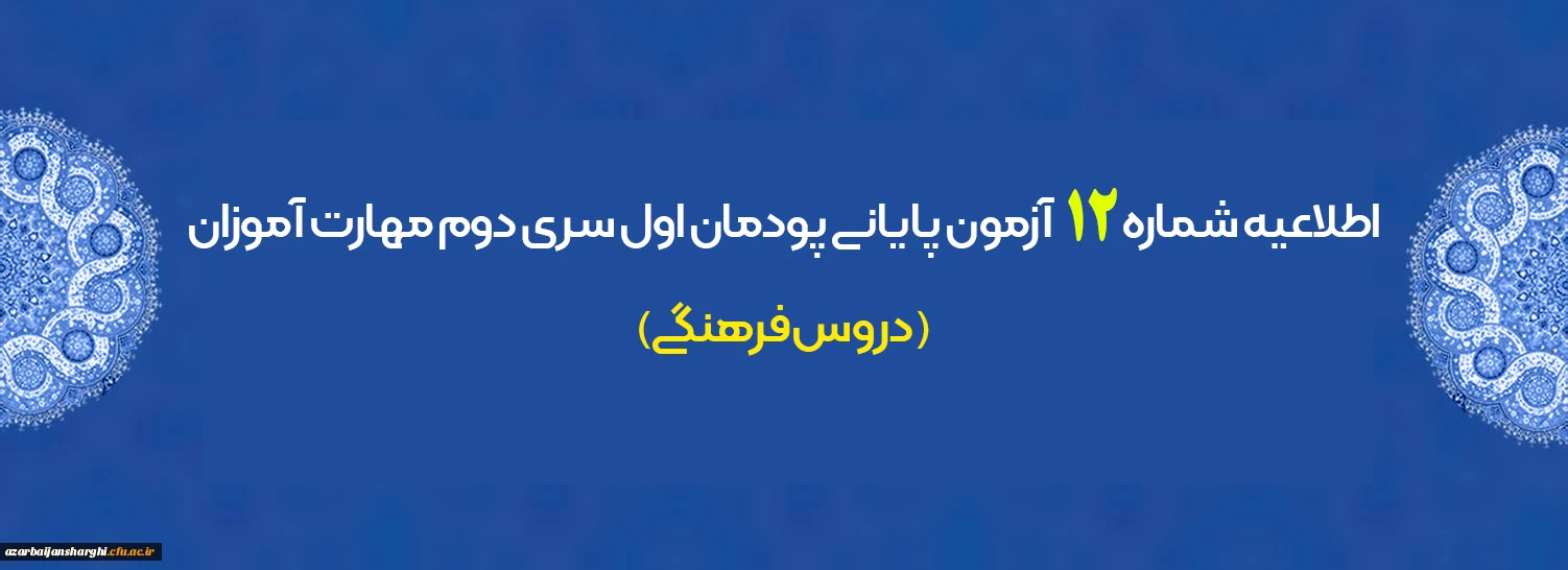 امتیاز دهید : اطلاعیه شماره 12 آزمون پایانی پودمان اول سری دوم مهارت آموزان (دروس فرهنگی) 2 دوشنبه 7 تیر 1400 ساعت 11:40
