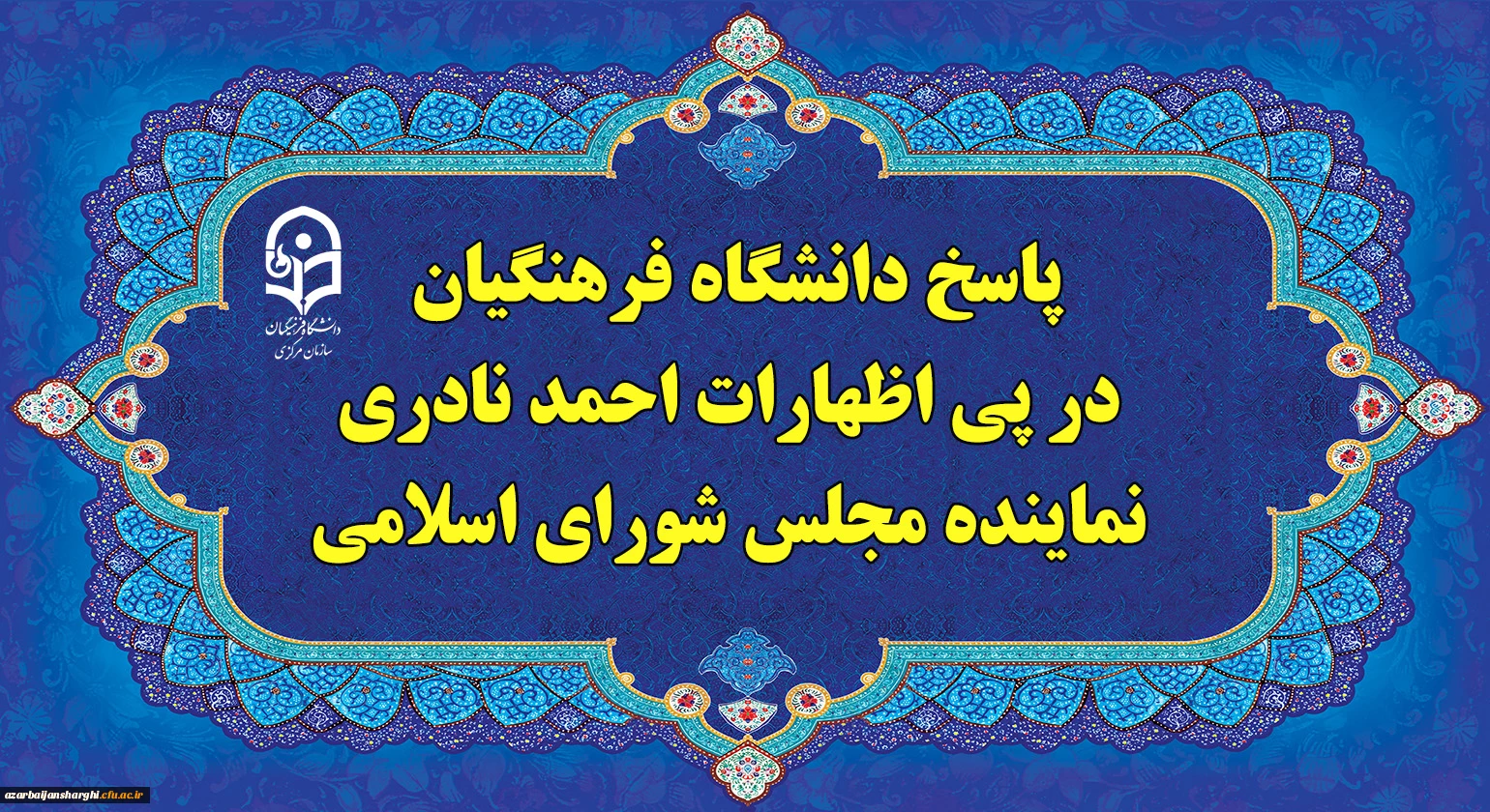 امتیاز دهید : پاسخ دانشگاه فرهنگیان، در پی اظهارات احمد نادری نماینده مجلس شورای اسلامی 2 چهارشنبه 27 مرداد 1400 ساعت 21:44