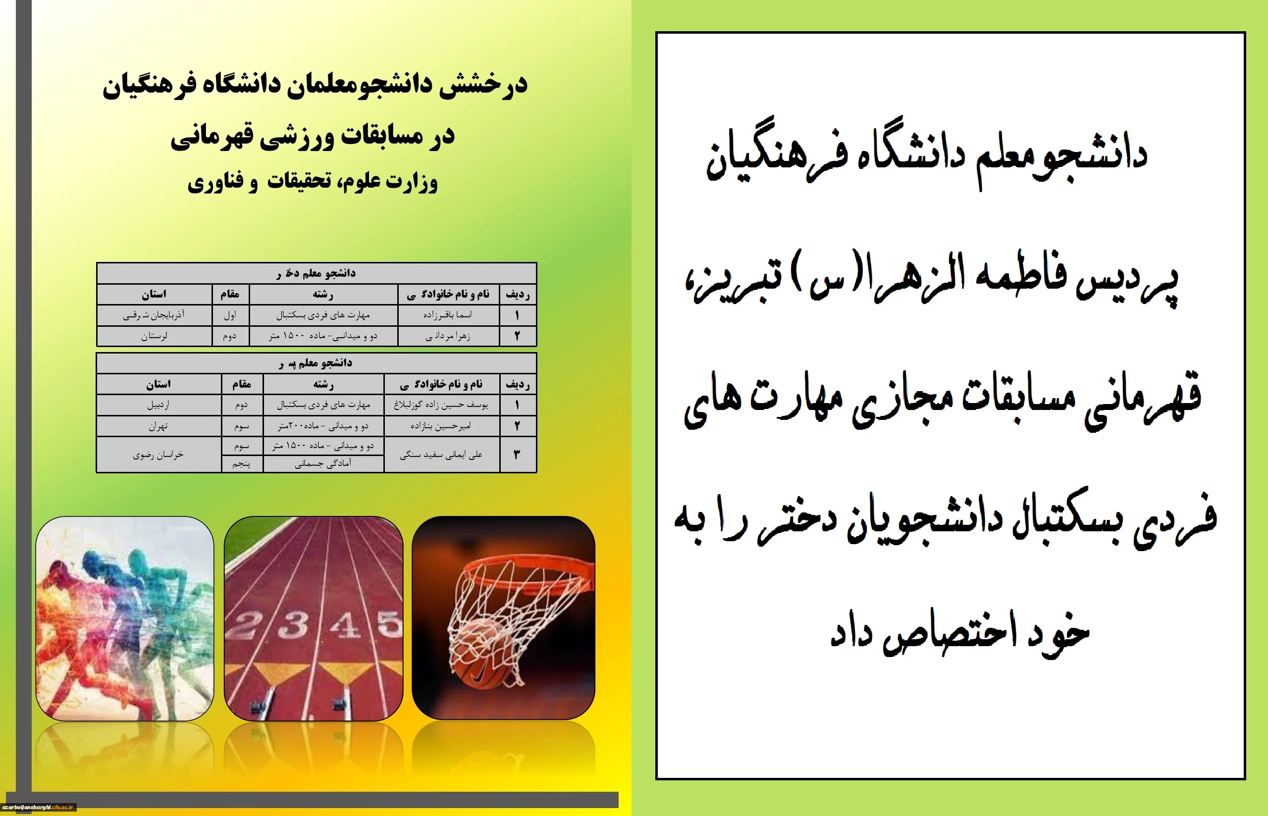 درخشش دانشجومعلمان در مسابقات ورزشی قهرمانی دانشگاه ها و موسسات آموزش عالی سراسر کشور 2