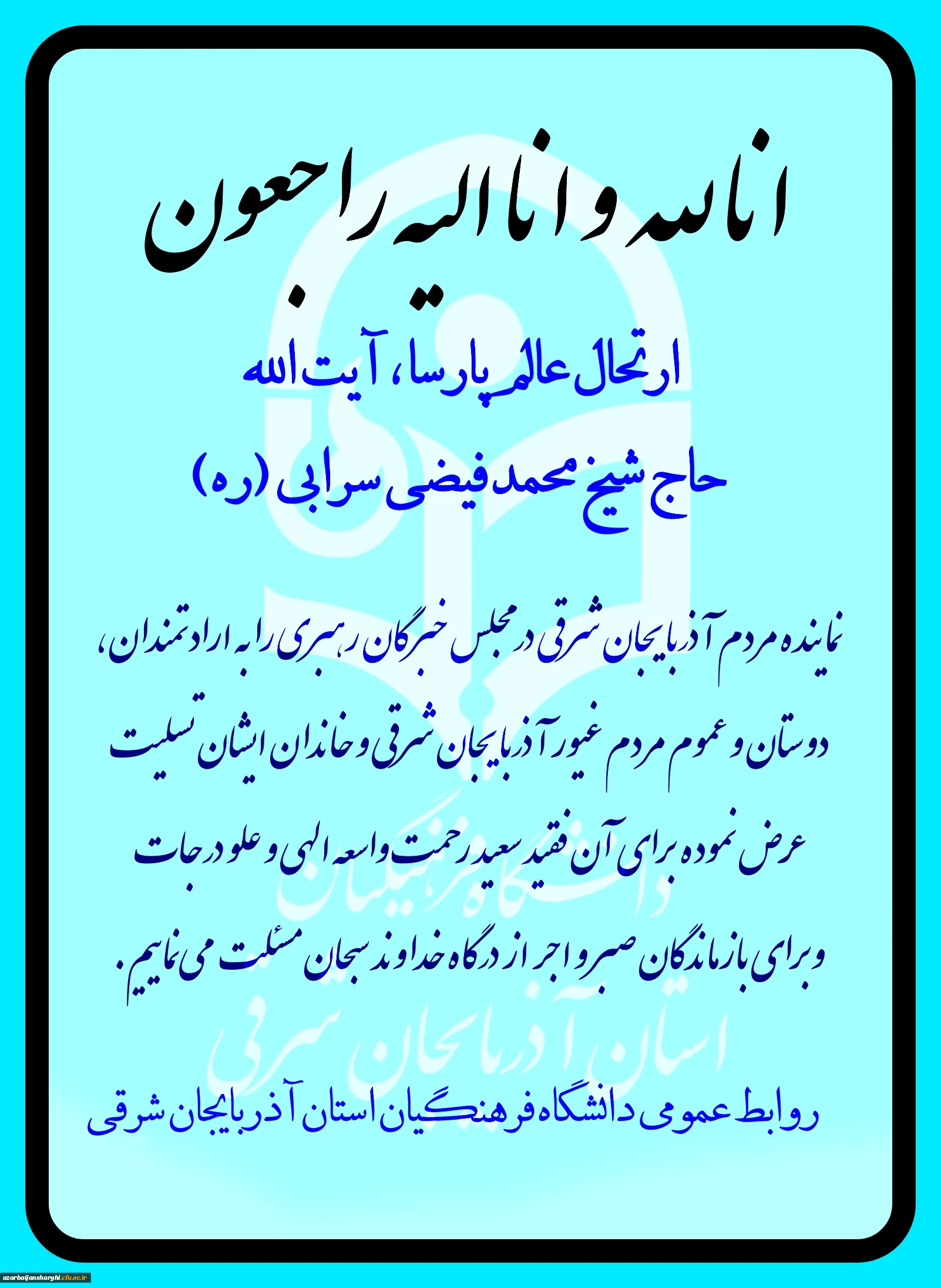 عرض تسلیت در پی رحلت عالم پارسا آیت الله حاج شیخ محمد فیضی سرابی 3