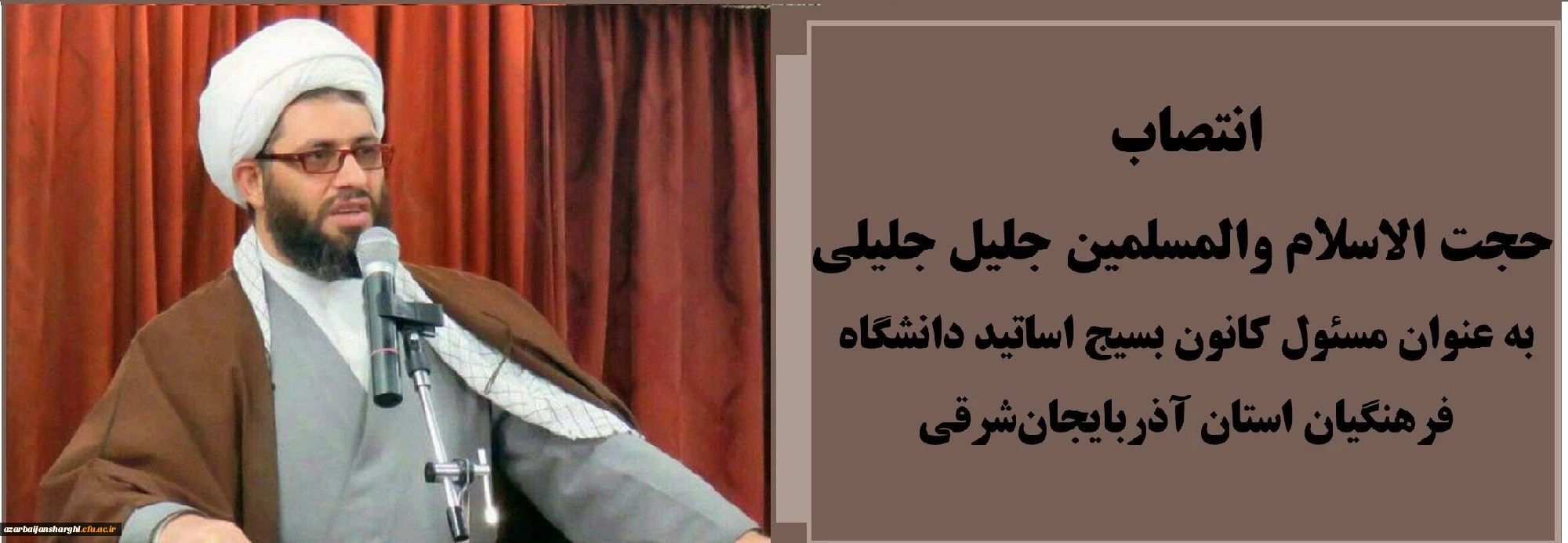 انتصاب حجت الاسلام والمسلمین جلیل جلیلی به عنوان مسئول کانون بسیج اساتید دانشگاه فرهنگیان استان آذربایجان شرقی