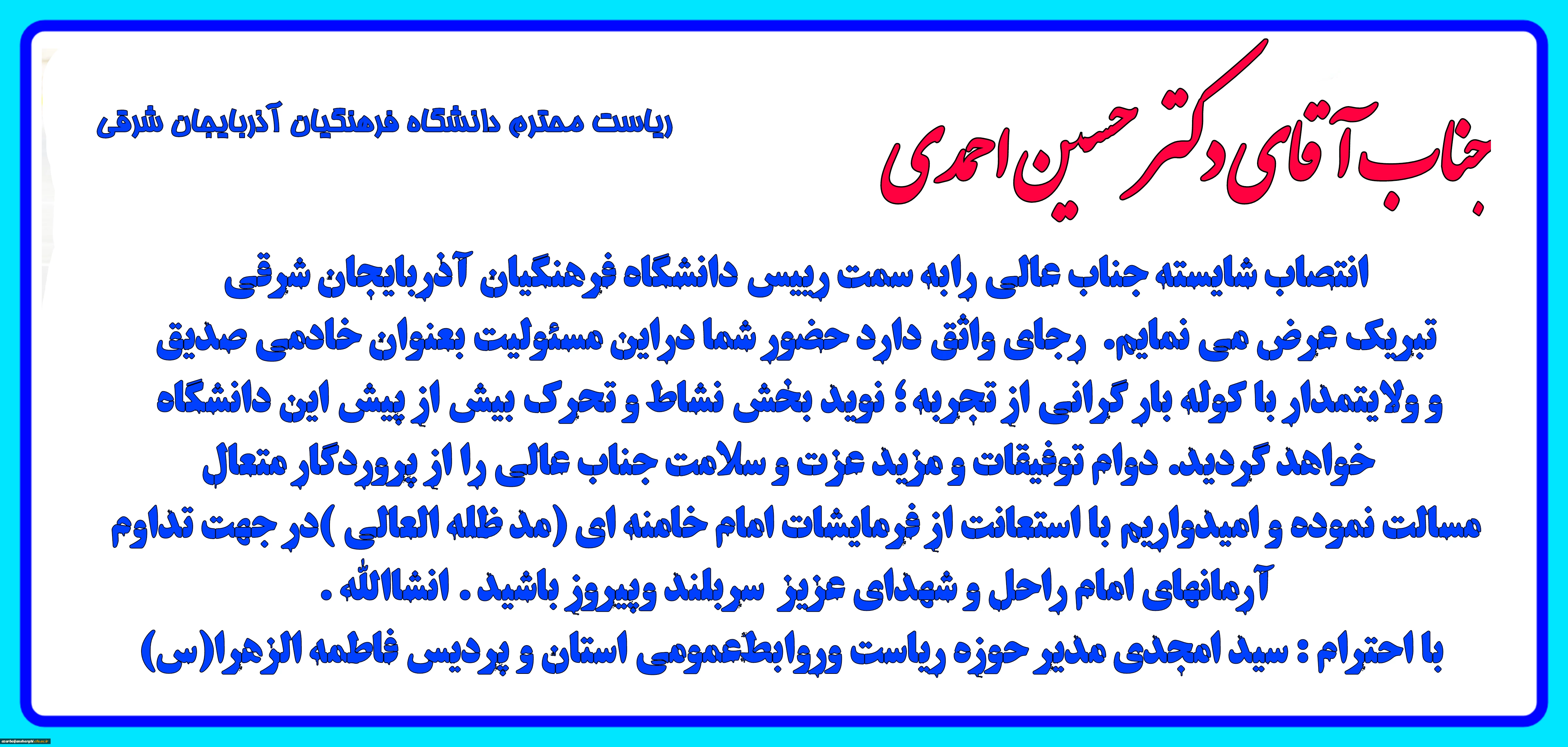 امتیاز دهید : تبریک انتصاب رییس دانشگاه فرهنگیان استان آذربایجان شرقی 3 چهارشنبه 28 تیر 1402 ساعت 6:45