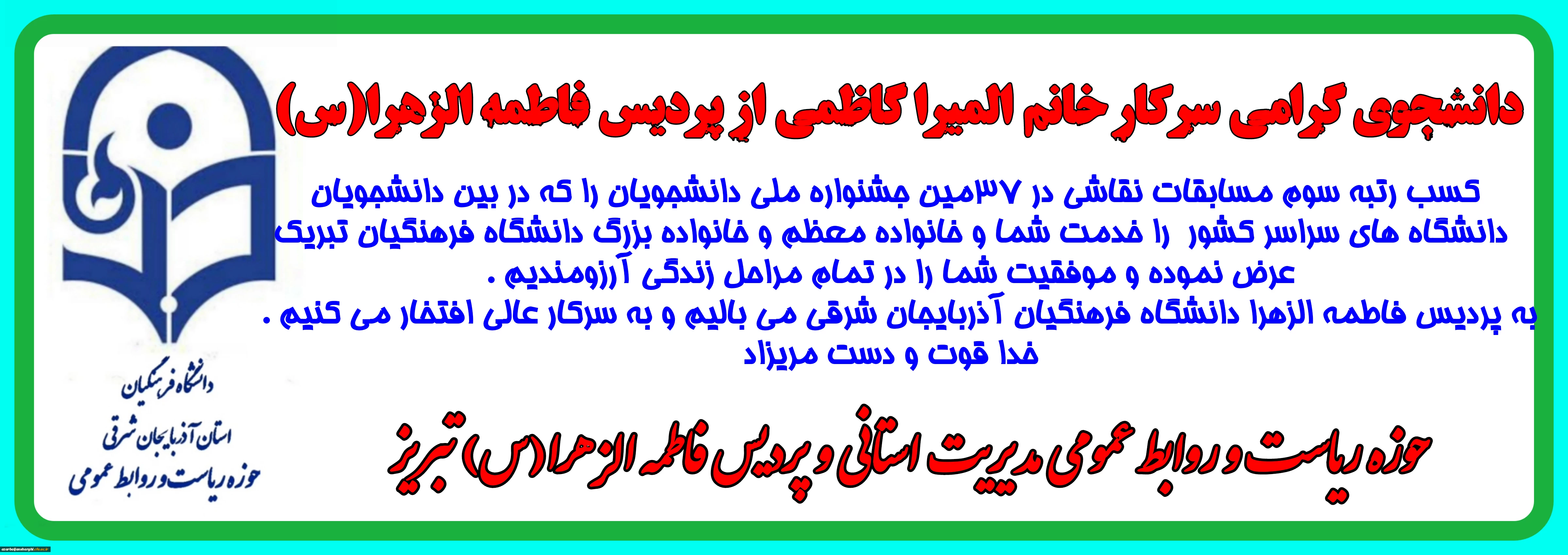 سرکار خانم المیرا کاظمی از پردیس فاطمه الزهرا (س) تبریز مقام سوم رشته نقاشی دانشجویان سراسر کشور را به خود اختصاص داد 3