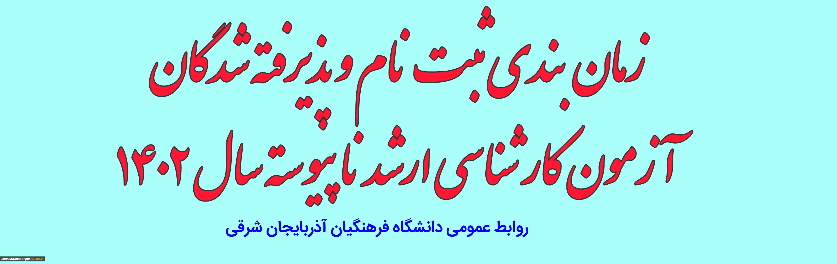 امتیاز دهید : ثبت نام و پذیرش غیر حضوری آزمون کارشناسی ارشد ناپیوسته سال 1402 2 دوشنبه 20 شهریور 1402 ساعت 10:14