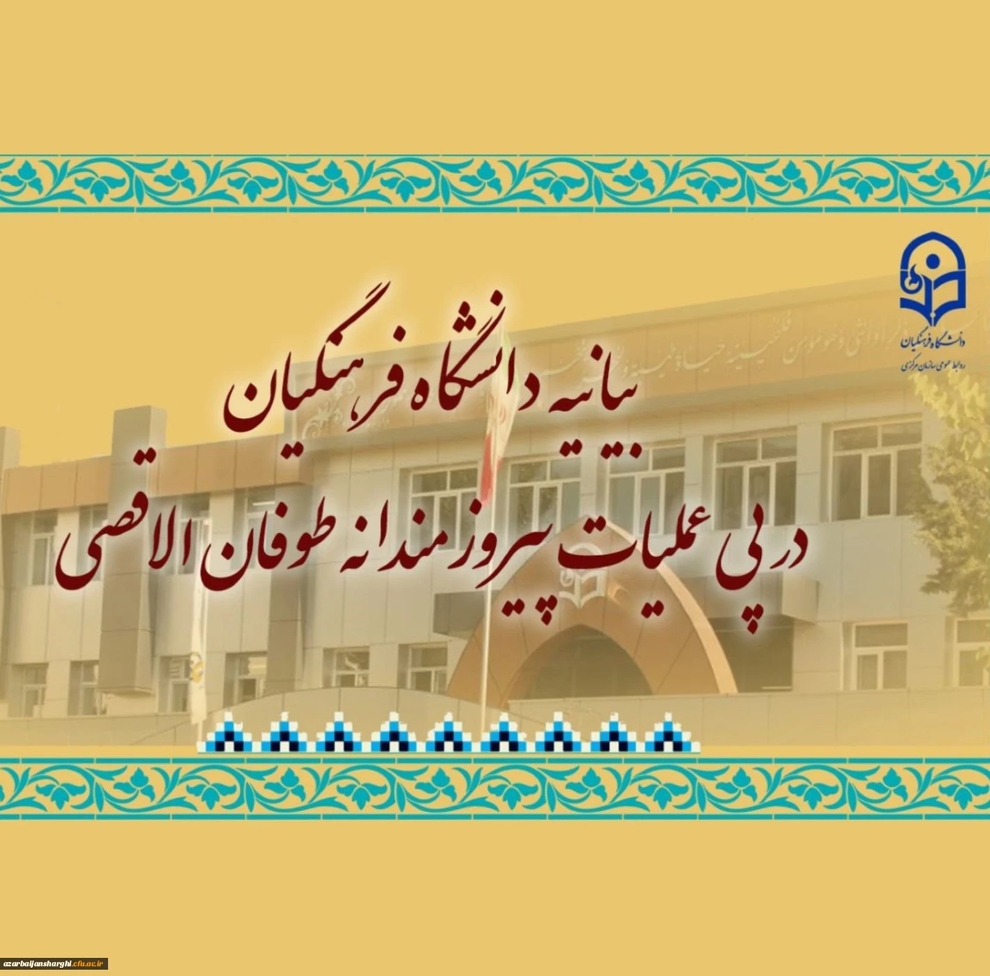 امتیاز دهید : بیانیه دانشگاه فرهنگیان در پی عملیات پیروزمندانه طوفان الاقصی 2 یکشنبه 23 مهر 1402 ساعت 0:30