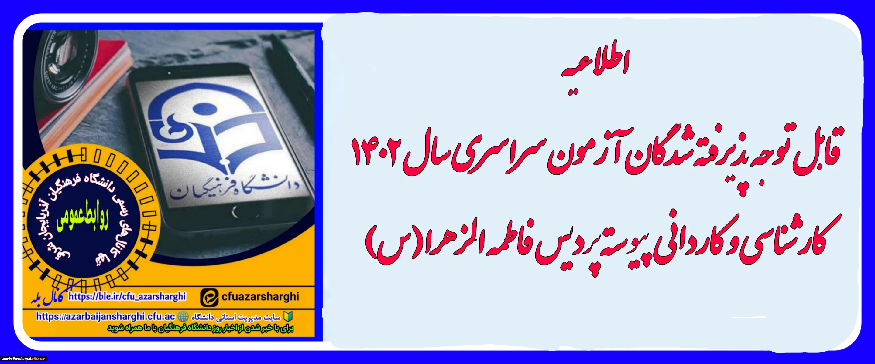 اطلاعیه ثبت نام حضوری قبول شدگان آزمون سراسری1402 دانشگاه فرهنگیان پردیس فاطمه الزهرا(س) تبریز 2