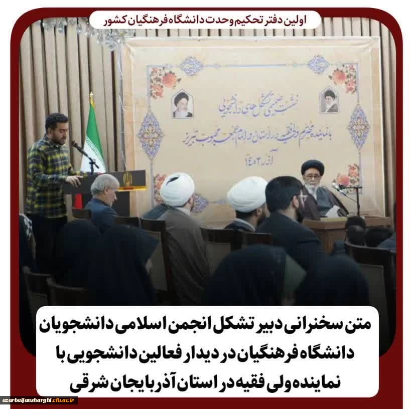 متن سخنرانی علیرضا محمدی دبیر و موسس تشکیل دفتر تحکیم وحدت دانشگاه فرهنگیان استان و نماینده دانشجویی دانشگاه فرهنگیان آذربایجان شرقی 2
