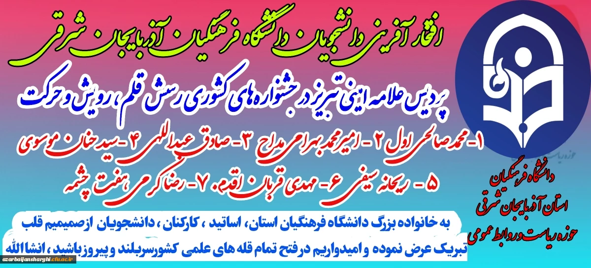 امتیاز دهید : درخشش دانشجومعلمان تبریزی در جشنواره کشوری رسش قلم حرکت و رویش 2 جمعه 20 بهمن 1402 ساعت 17:01