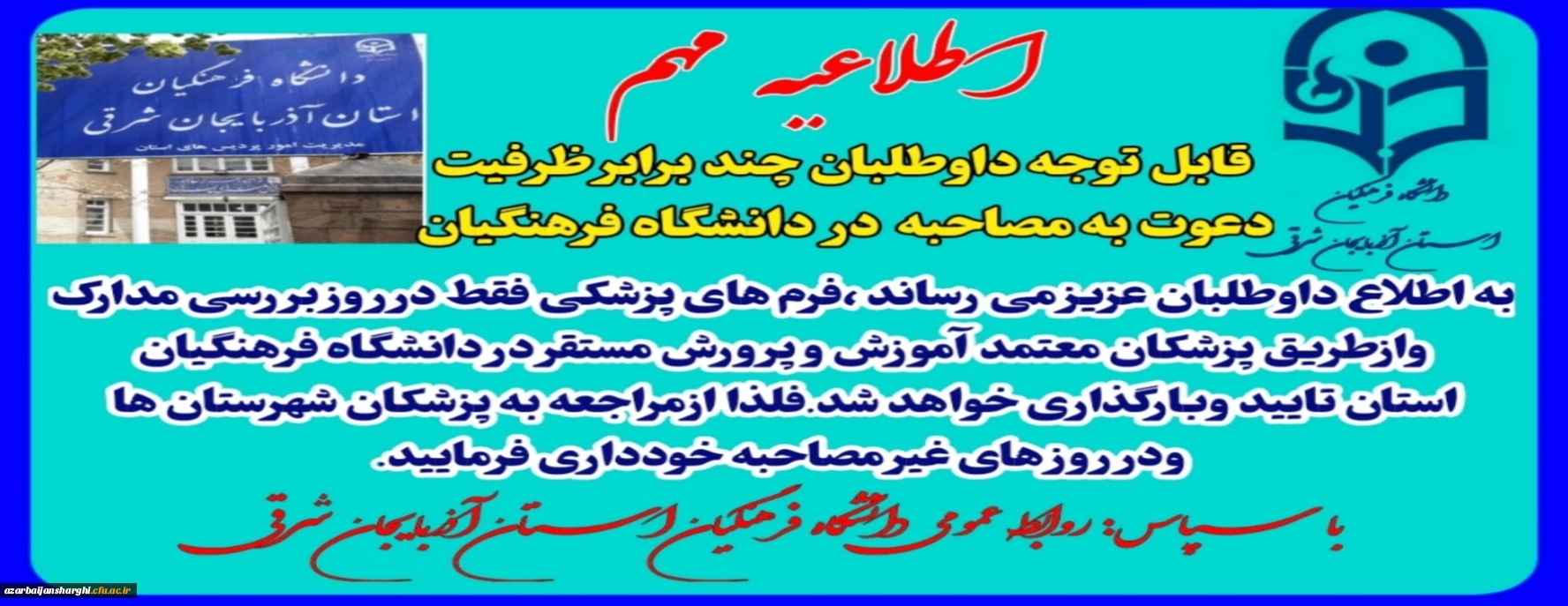 قابل توجه داوطلبان ورود به دانشگاه فرهنگی 2