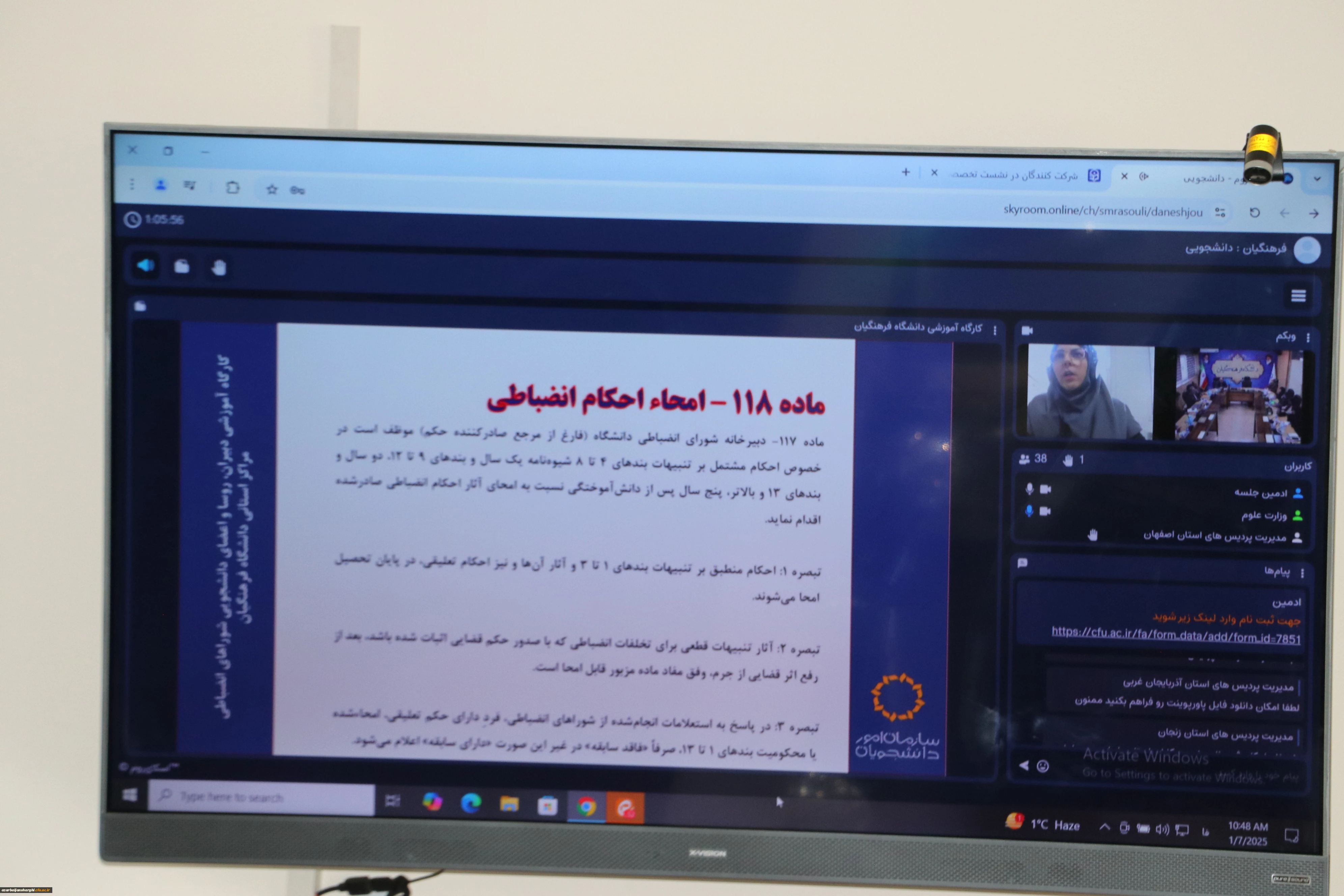 امتیاز دهید : جلسه ویدیو کنفراس شورای انضباطی دانشگاه فرهنگیان استان آذربایجان شرقی 7 سهشنبه 18 دی 1403 ساعت 0:56