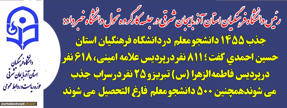 امتیاز دهید : جذب ۱۴۵۵ دانشجو معلم از کنکور سال ۱۴۰۴ در.دانشگاه فرهنگیان آذربایجان شرقی 2 سهشنبه 13 خرداد 1404 ساعت 6:14