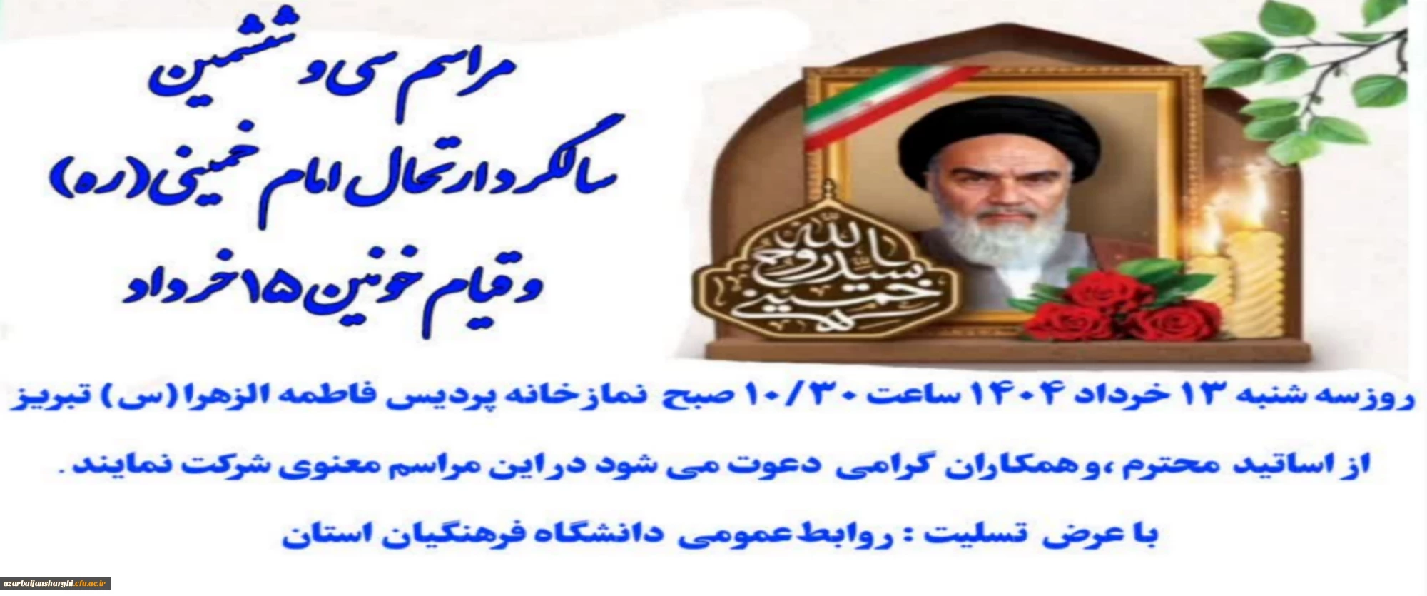 ارتحال جانسوز بنیانگذار جمهوری اسلامی ایران حضرت امام خمینی (ره) و شهدای قیام ۱۵ خرداد تسلیت باد. 2