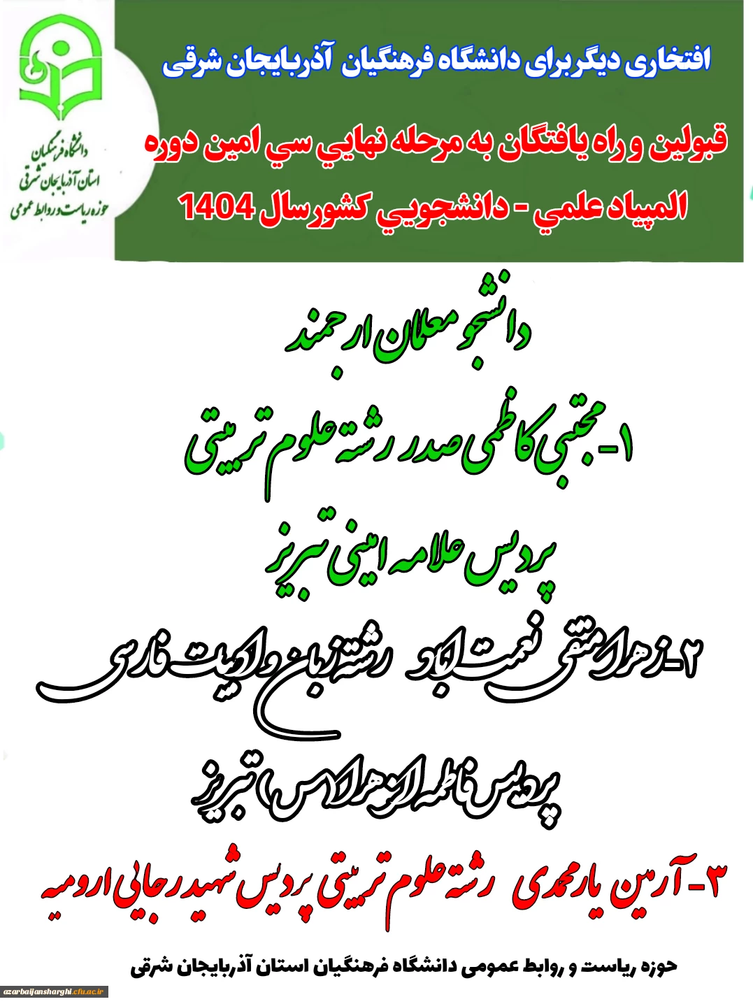 افتخار آفرینی دانشجو معلمان آذربایجان شرقی و غربی در سی امین دوره المپیاد علمی - دانشجویی کشور 2
