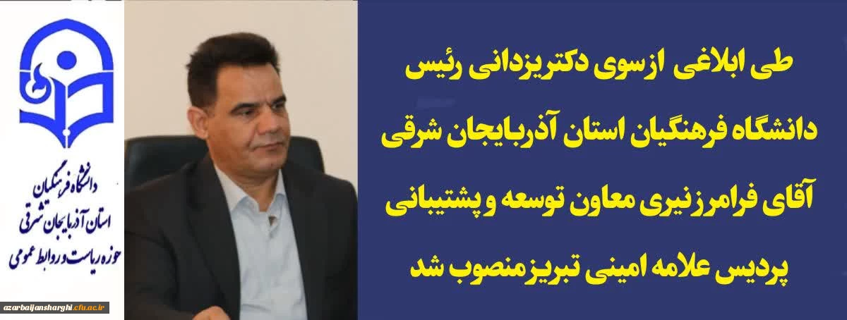 امتیاز دهید : فرامرز نیری معاون توسعه و پشتیبانی پردیس علامه امینی تبریز منصوب شد 2 یکشنبه 23 شهریور 1404 ساعت 8:35