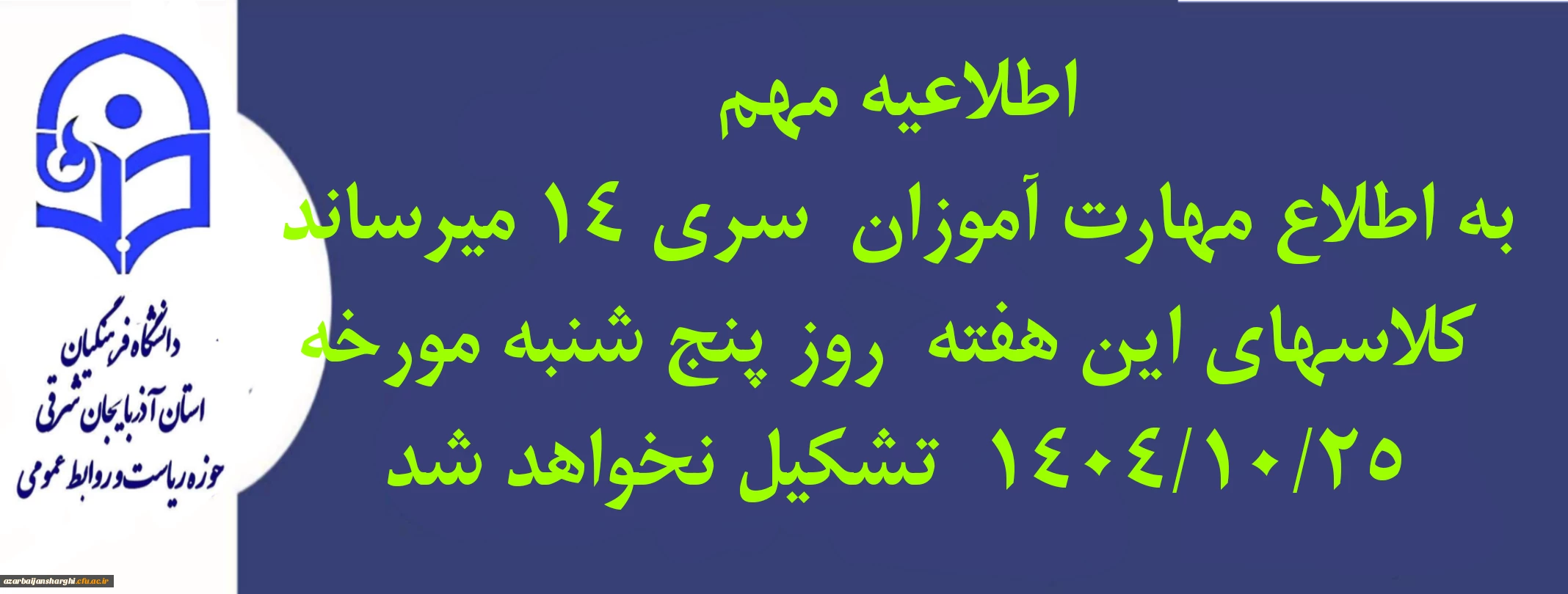 امتیاز دهید : اطلاعیه مهارت آموزان سری ۱۴ دانشگاه فرهنگیان آذربایجان شرقی 2 چهارشنبه 24 دی 1404 ساعت 13:46